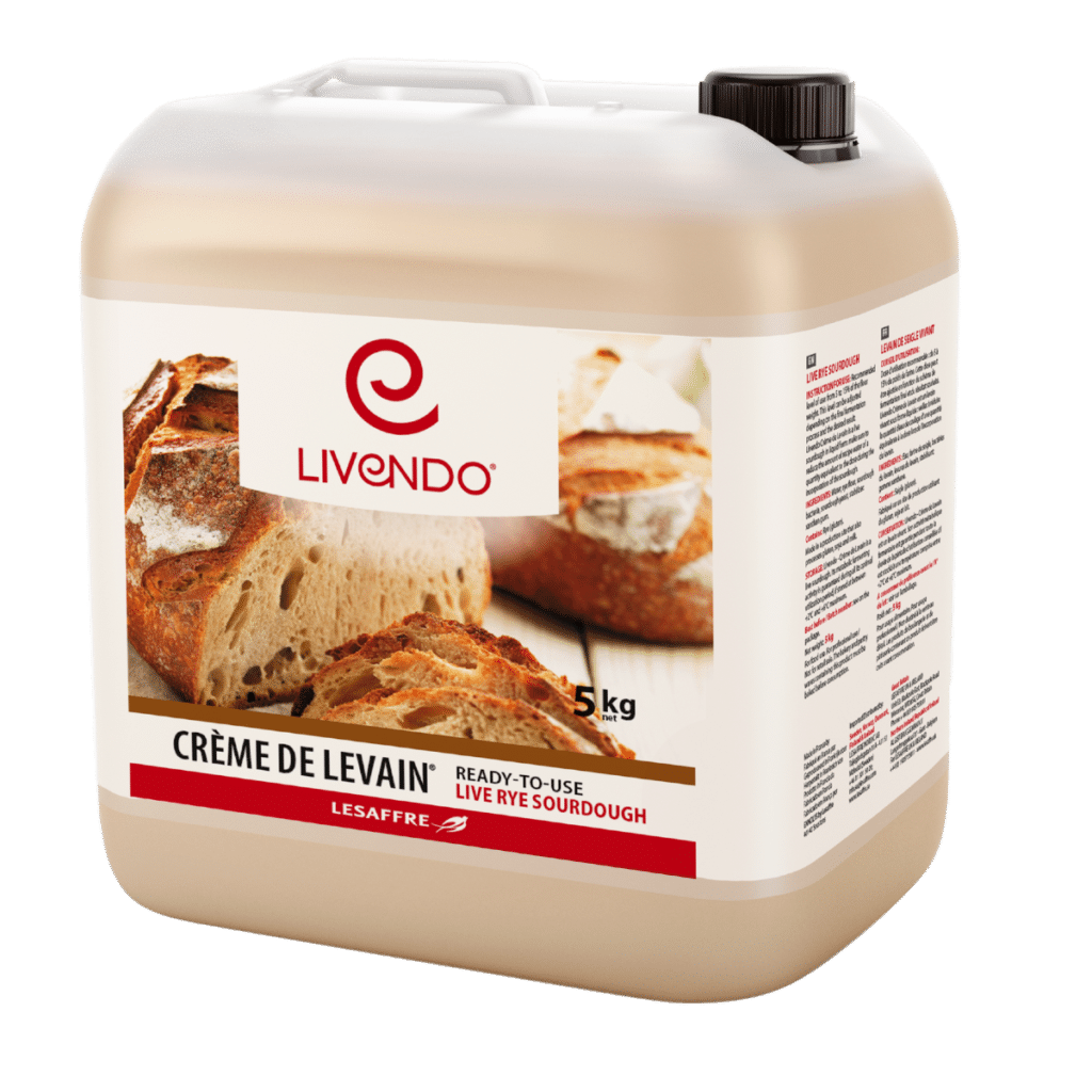Crème de levain is the premium product of the LIVENDO® live sourdoughs range. Crème de levain Rye offers a real aromatic typicity of authentic sourdough bread with a traditional flavor. Crème de levain brings real signature (flavor and txture) to bread crust in long process. Crème de levain Rye is compliant with [ex : Décret Pain (93.1074)]. Crème de levain exists also in spelt version.